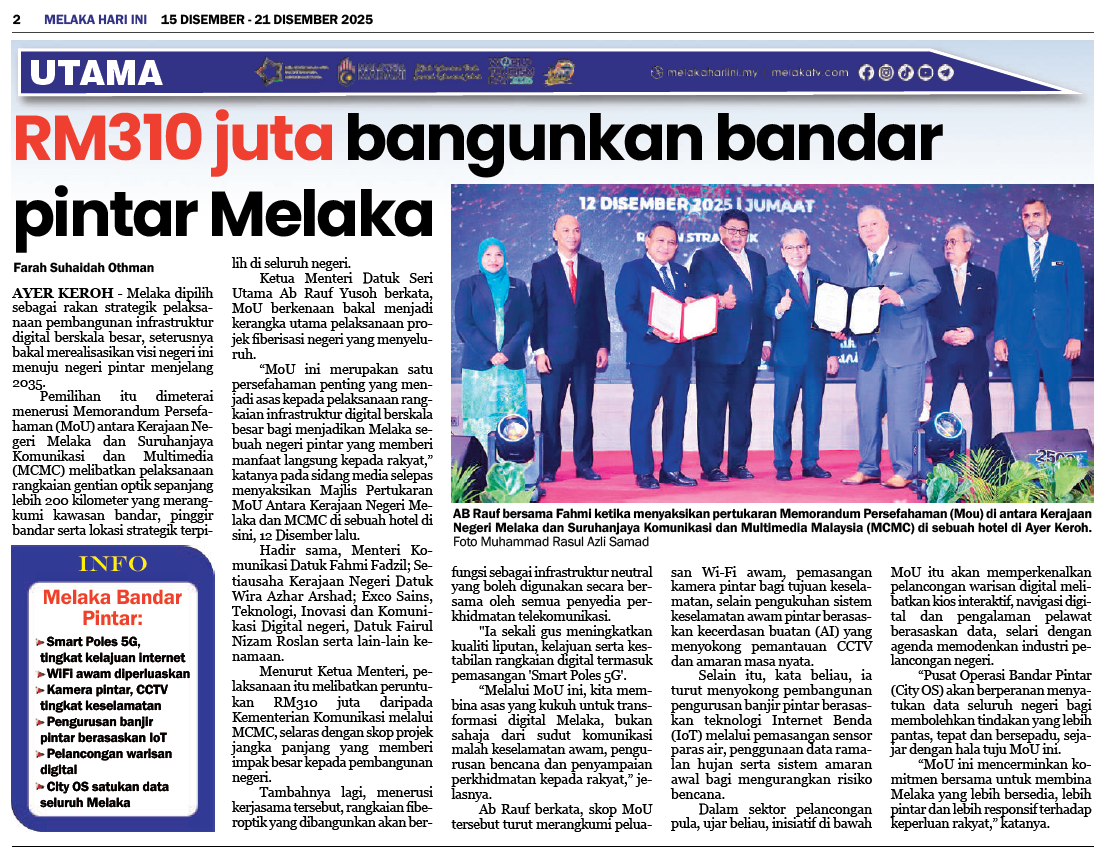 RM 310 JUTA BANGUNKAN BANDAR PINTAR MELAKA