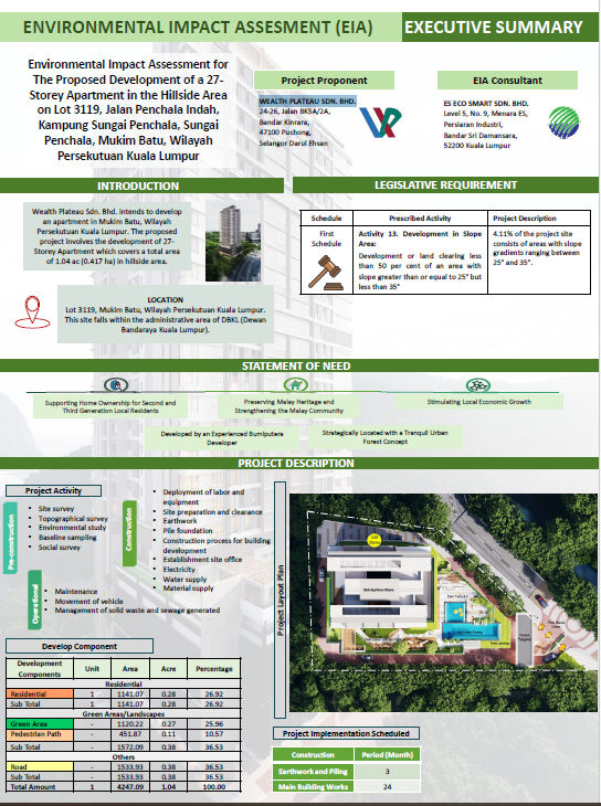 Environmental Impact Assessment for The Proposed Development of a 27-Storey Apartment in the Hillside Area on Lot 3119, Jalan Penchala Indah, Kampung Sungai Penchala, Sungai Penchala, Mukim Batu, Wilayah Persekutuan Kuala Lumpur