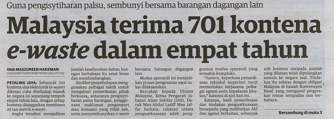 Malaysia terima 701 kontena ewaste dalam empat tahun, 23 Januari 2026, Utusan Malaysia