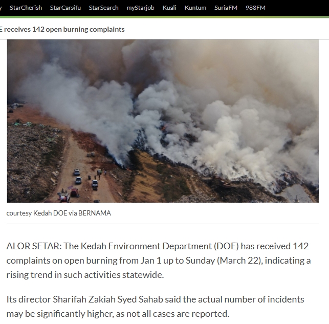 Kedah DOE receives 142 open burning complaints- THE STAR