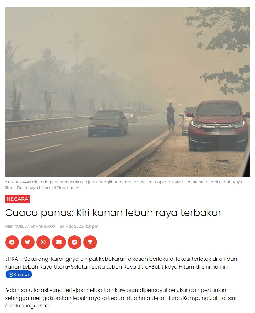 Cuaca panas: Kiri kanan lebuh raya terbakar